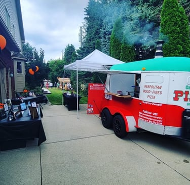 Book our mobile pizza trailer for your next event. Fresh, made-to-order pizzas await!