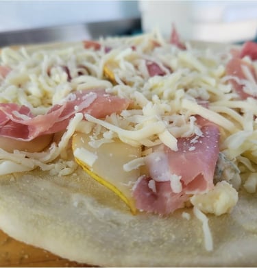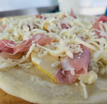 Old-world style pepperoni, jalapenos, cheese finished with a hot honey drizzle